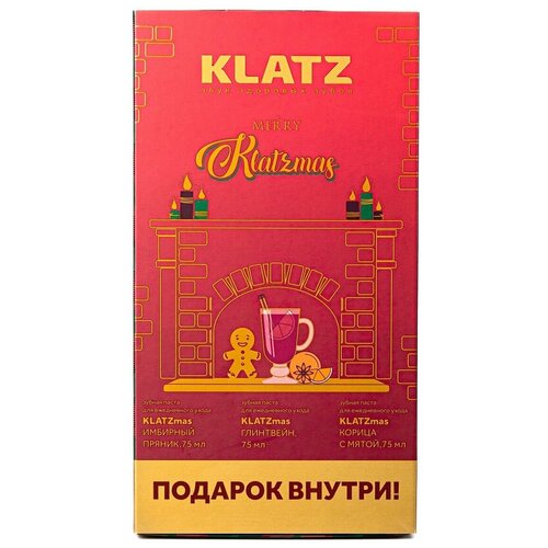 Набор KLATZ зубных паст KLATZmas с рождественской свечой: Глинтвейн Корица с мятой Имбирный пряник, 3 х 75 мл