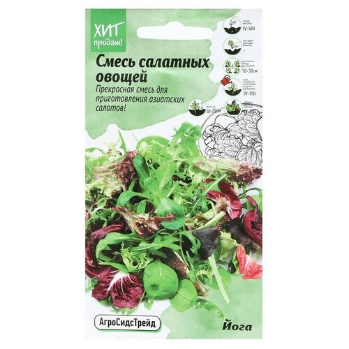 Артикул: 1909653. Вес: 2 гр., Размер упаковки: 8 x 0.2 x 15 см., Агрономический срок годности, лет: 3, Температурное ограничение: Нет. Смесь салатных овощей йогасмесь листовых овощей для приверженцев здорового образа жизни! В состав смеси входят рукола индау) Полиглот, полевой салат корн) Экспромт, горчица сарептская Прелестная, цикорный салат Пала Росса. Эти ранние салатные культуры кладезь витаминов, минералов, антиоксидантов и биологически активных веществ. Разнообразные по окраске и фактуре листья имеют нежную, сочную, хрустящую консистенцию. Прекрасное сочетание дополняющих друг друга вкусов салатный с легкой горчинкой, пряный ореховый, сладковатый и пикантный горчичный, Это смесь идеально подходит для приготовления свежих салатов. Первую срезку зелени проводят через 2025 дней после посева. Рекомендуется для выращивания в открытом и защищенном грунте. .