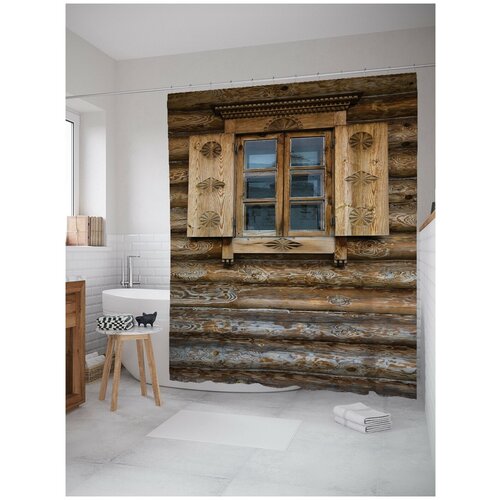 Штора занавеска) для ванной JoyArty Загляни в окошко из сатена, 180х200 см с крючками