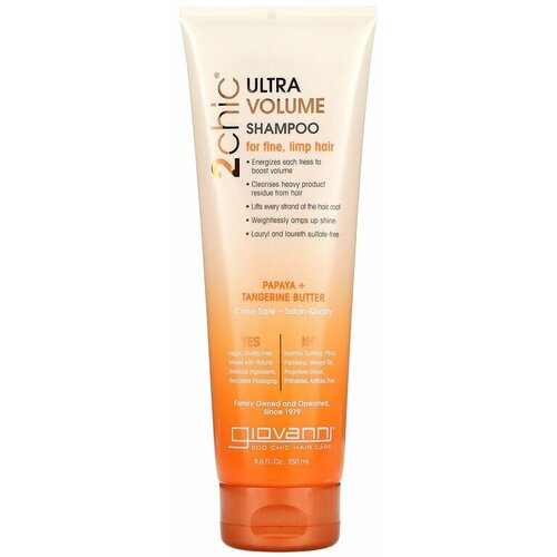 Giovanni, 2chic, шампунь для ультраобъема, для тонких и слабых волос, с маслом папайи и мандарина, 250 мл