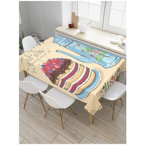 Скатерть прямоугольная JoyArty на кухонный стол Чай с тортом из оксфорда, 180x145 см