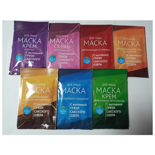 лагодаря мощным свойствам грязевой основы, интенсивно насыщает кожу минералами и обладает прекрасным увлажняющим действием. Данный продукт оказывает омолаживающее воздействие на кожу лица, повышается упругость, тургор кожи, выравнивается ее цвет. Устраняются такие явления, как покраснение, сосудистые сетки, постепенно исчезает раздражение кожи, на ней появляется естественный оттенок и здоровый натуральный румянец.Как результат: кожа очищена от загрязнений, хорошо увлажнена. Появляется упругость, гладкость, кожа становится эластичной и нежной.Набор из 7 масок с Сакской грязью состоит: 1. Лифтинг эффект. 2. Омолаживающая и восстанавливающая. 3. Увлажняющая от морщин.4. Интенсивная питательная. 5. Для глубокого очищения.6. Осветляющая.7. Для проблемной кожи Антиакне)