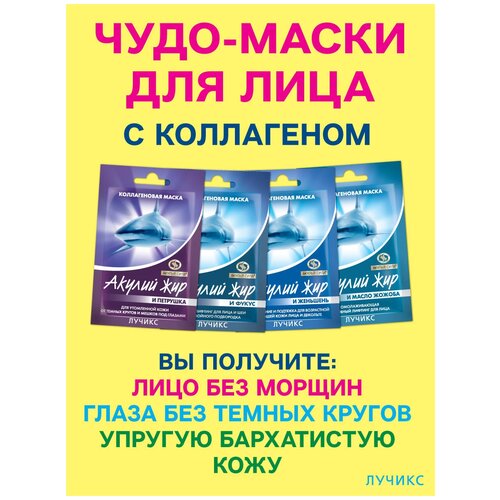 Акулья сила. Маски для лица коллагеновые 4 шт. лифтинг от морщин от темных кругов омоложение лучикс