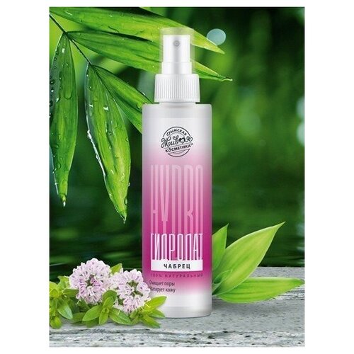 Гидролат чабреца натуральный. Многофункциональное средство для ухода за кожей и волосами. Не содержит ароматизаторов и консервантов! Сужает и очищает поры, борется с комедонами Нормализует жирность, матирует кожу Обладает вяжущими и антисептическими свойствами Стимулирует заживление и регенерацию Устраняет высыпания и воспаления Тонизирует и подтягивает кожу Нормализует чрезмерное потоотделение Борется с выпадением волос и себореей Гидролат получают методом паровой дистилляции через растительное сырье прогоняют пар и после собирают образовавшийся конденсат. Так все полезные вещества растения остаются в полученном растворе. По свойствам и воздействию гидролат можно сравнить с эфирными маслами, но действует он намного более мягко и его можно использовать в чистом виде. Он легко проникает в верхние слои кожи и в структуру волос, благодаря чему обеспечивает быстрый и качественный результат. Состав: гидролат чабреца Thymus Serpyllum), полученный из растительного сырья путем гидродистилляции. Применение: Для кожи: наносить на ватный диск и протирать лицо как обычным тоником, завершая процесс очищения, прикладывать в виде аппликаций или распылять непосредственно на лицо, что особенно эактуально в летнюю жару и отопительный сезон, когда кожа страдает от сухости и хочется освежиться. Также можно добавлять гидролат в другие косметические средства, например, разводить глиняные маски или убтаны. Для волос: использовать, как полезный спрей для укрепления волос или ополаскиватель после мытья. Противопоказания: индивидуальная непереносимость.