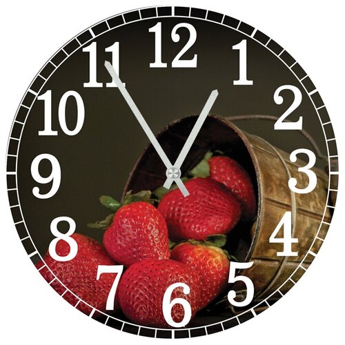 Настенные часы для кухни. Модель для современного интерьера. Механизм: Кварцевый Корпус: Дерево Размер: Диаметр 40 см Рисунок: Клубника