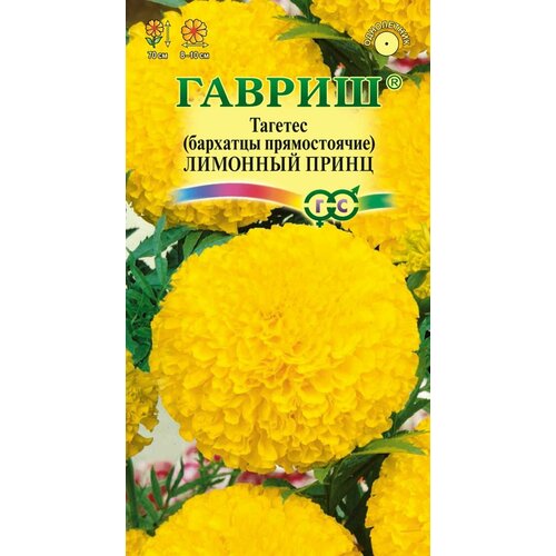 Семена гавриш Бархатцы прямостоячие Тагетес) Лимонный принц однолетнее растение семейства Сложноцветные. Стебли прямостоячие, 20см высотой, сильно ветвистые от основания, боковые побеги отклоненные. Соцветия корзинки яркого оранжевого цвета, 1012см в диаметре. В открытый грунт можно высевать в конце мая начале июня. Всходы появляются на 510 день. Почву желательно накрыть нетканым материалом акрил, лутрасил). В этом случае сеять можно на неделю полторы раньше обычных сроков и тем самым ускорить цветение. На рассаду сеют в начале апреля. Цветение начнется в июне. Бархатцы, высаженные рядом с огородными культурами уменьшают их поражение грибными заболеваниями, особенно фузариозом, защищают от некоторых видов нематод. Бархатцы используют во всех видах цветников. Они хорошо растут в горшках, вазонах, балконных ящиках, в сочетании с примулами и цинерариями. Осенью цветущие растения можно перенести в комнату, где они прекрасно растут в течение зимы, а весной, высаженные в открытый грунт, образуют большой цветущий куст.