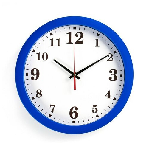 Часы настенные Классика, арабские цифры, синий обод, 28х28 см