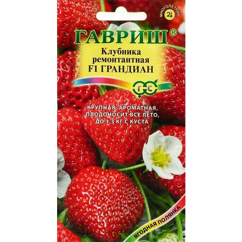 Клубника ремонтантная F1 Грандиан, 1 пакет, семена 5 шт, Гавриш, для открытого грунта и комнатного выращивания