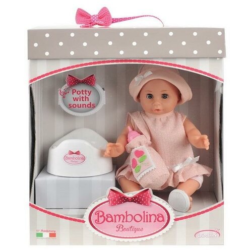 Кукла-пупс из серии BOUTIQUE, 36 см. от итальянского бренда Dimian (Димиан) В наборе с горшком и большой бутылочкой в мешке, в цвет платья Наряд куклы изготовлен в ручную Тело, голова и конечности изготовлены из ПВХ, без механизмов. - подвижные глаза, - подвижные конечности Дополнительно: Для детей от 3-х лет. Все куклы и наборы серии Boutique упакованы в красивую подарочную коробку!!!