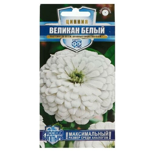 Семена цветов Цинния Великан белый, серия Русский богатырь, 0,3 г