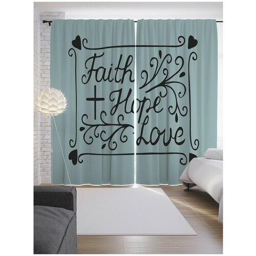 Шторы JoyArty с фотопечатью Расписные вера, надежда, любовь из сатена, 290х265 см