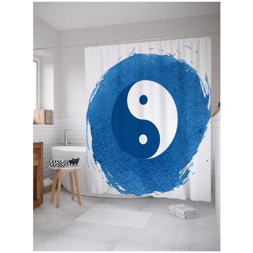 Штора занавеска) для ванной JoyArty Морской Инь и ян из сатена, 180х200 см с крючками