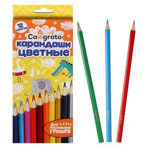 Карандаши цветные Calligrata 12 цветов, корпус деревянный, треугольный