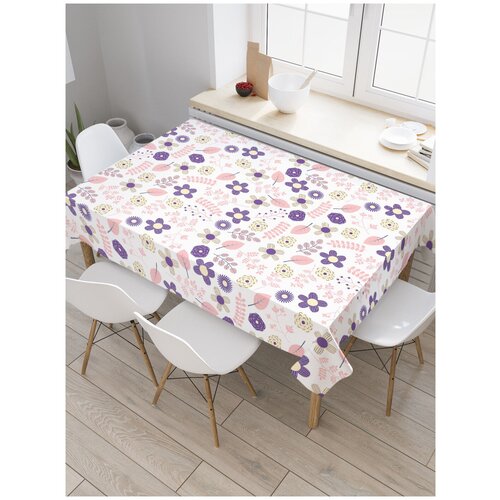 Скатерть прямоугольная JoyArty Цветы и листья наив из сатена, 120x145 см