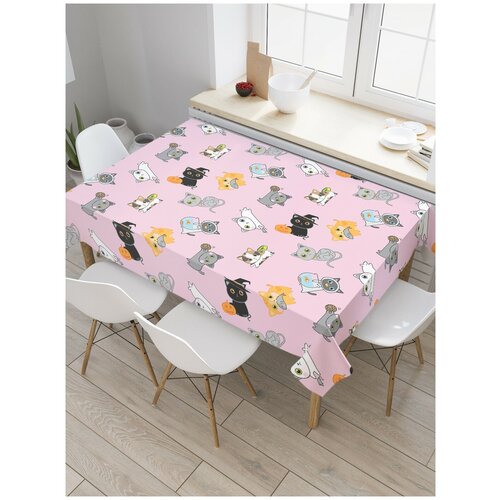 Скатерть прямоугольная JoyArty Разнообразная жизнь котов из сатена, 120x145 см