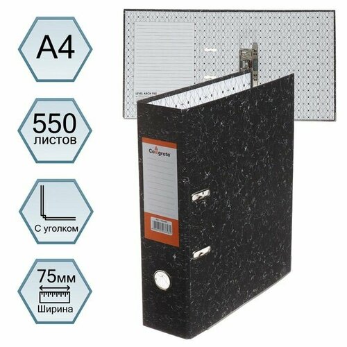 Папкарегистратор 75мм, А4, Calligrata Standart, мрамор, нижний металлический кант, черная