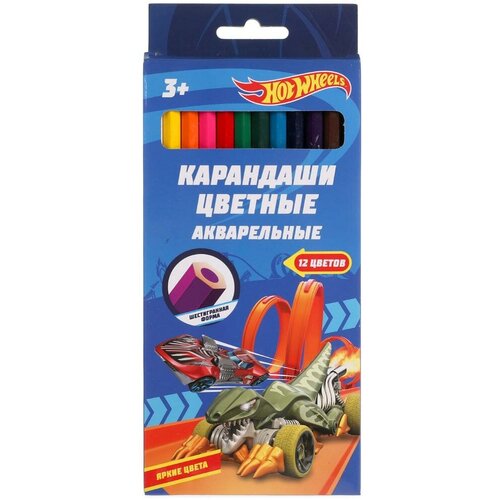 Цветные карандаши Хот Вилс, 12 цветов, акварельные УМка CPA1255386HW