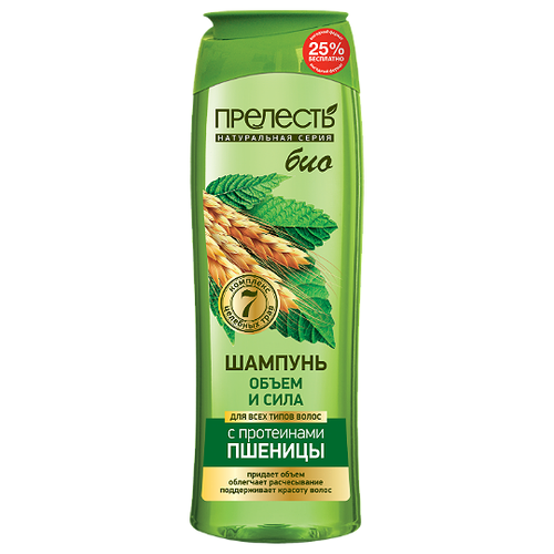 Прелесть био шампунь Объем и сила с протеинами пшеницы для всех типов волос, 400 мл