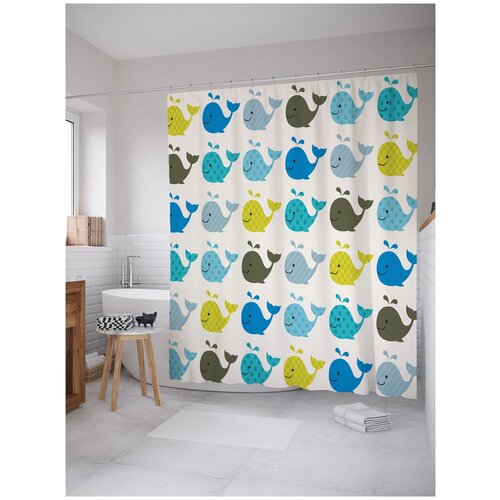 Штора занавеска) для ванной JoyArty Пятнистые киты из сатена, 180х200 см с крючками