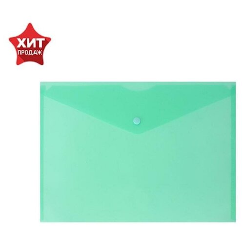 Изготовлена из плотного пластика толщиной 180 мкм ярких цветов, полупрозрачная. Папка плотно закрывается на кнопку. Удобна для хранения и переноски документов, предотвращает их смятие и загрязнение. Вид товара: папкаконверт. Способ фиксации: кнопка. Формат: A4. Материал: пластик. Ориентация: горизонтальная. Толщина материала: 180 мкм. Размер: 330 х 235 мм. Вместимость, в листах: 100 С расширением: нет. Цвет: зелный. Текстура глянцевая, гладкая. Цвет Зелный. Формат А4. Количество отделений 1. Толщина, мкм 180. Вид застжки Кнопка. Рисунок Нет. Материал Полипропилен. Особенности папок Горизонтальная.