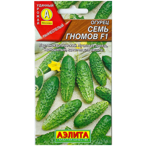 Семена Огурец 34;Семь гномов34; F1, раннеспелый, партенокарпический, 10 шт. Семь гномов раннеспелый партенокарпический гибрид. Предназначен для выращивания под плночными укрытиями. Растение цветт по женскому типу с пучковым заложением завязей и формирует бугорчатые плоды с редким чрным опушением.Период от всходов до урожая: 4549 дней.Урожайность: 1718 кгм.Масса плода: 120140 г.Как сажать. Семена сеют в грунт или на рассаду. Возраст рассады при высадке: 2030 дней. Плотность посадки в открытом грунте 45 шт, в теплицах 23 шт. на м. В теплицах растения подвязывают к шпалере и формируют в один стебель. Боковые побеги прищипывают над вторымтретьим листом.