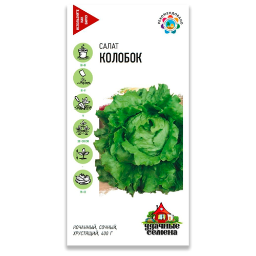 Семена, Удачные семена, Салат, Колобок, 0,5 грамма, кочанный, хрустящий, зеленый
