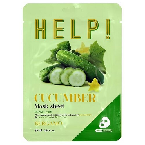 Маска для лица BERGAMO HELP! с экстрактом огурца увлажняющая и успокаивающая) 25 мл