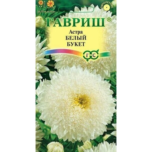 Серия однолетних астр высотой до 70 см с пушистыми соцветиями диаметром до 10 см. Отличается крепкими стеблями и обильным продолжительным цветением. Для выращивания подходят хорошо освещенные участки с плодородной суглинистой или супесчаной почвой. Астры обладают высокой холодостойкостью хорошо переносят заморозки до 34)оС. Выращивают чаще всего рассадным способом. Семена высевают в мартеапреле, пикируют с развитием первой пары настоящих листочков по схеме 5х5 см, в открытый грунт рассаду высаживают с середины мая до начала июня. Возможен подзимний посев астр в конце октября на глубину 58 см. Сверху посевы мульчируют торфом или опилками на высоту 35 см. Весной в конце марта начале апреля) посевы раскрывают. Появившиеся в конце апреля всходы будут закаленными, а выросшие растения сильными, устойчивыми к заморозкам и обильно цвести. Используются для получения срезки и оформления участка. Семена Астра Букет белый, 0,3г, Гавриш, Цветочная коллекция