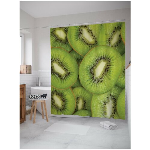 Штора водоотталкивающая для ванной, занавеска в ванную комнату тканевая JoyArty Нарезанный киви, 180х200 см