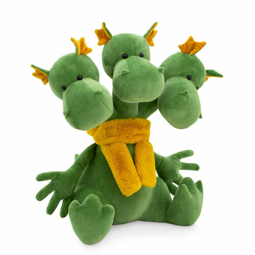 Представляем удивительную мягкую игрушку Горын Горыныч размером 40 см! Горын Горыныч изготовлен из высококачественных материалов, что придает ему мягкость и приятность на ощупь. Эта плюшевая игрушка воссоздает образ легендарного сказочного существа с тремя головами. Внутри используется металлический каркас, так что шею каждой из голов можете изгибать как захочется без опасений, ведь безопасность игрушек гарантирована прохождением обязательной сертификации. Горын Горыныч украшен стильным желтым меховым шарфиком. Подходит для детей от 3х лет. Это идеальный выбор для подарка, который принесет радость и улыбки вашим близким. Подарите эту чудесную игрушку своему ребенку, чтобы он мог носиться с этим многоголовым драконом по волшебным мирам и творить свои уникальные сказки. А ещ это Символ года, приносящий удачу и юморной подарок взрослому на любой праздник.