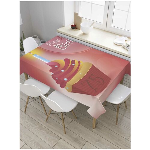 Скатерть прямоугольная JoyArty на кухонный стол Кекс на 75летие из оксфорда, 180x145 см