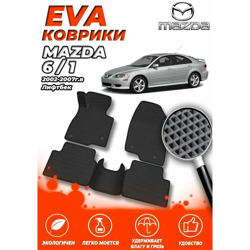 Комплект Автомобильных Ковриков EVA ЕВА ЭВА в салон Mazda 6 1 Мазда) 20022007 GG Лифтбек Черный Ромб Черная окантовка