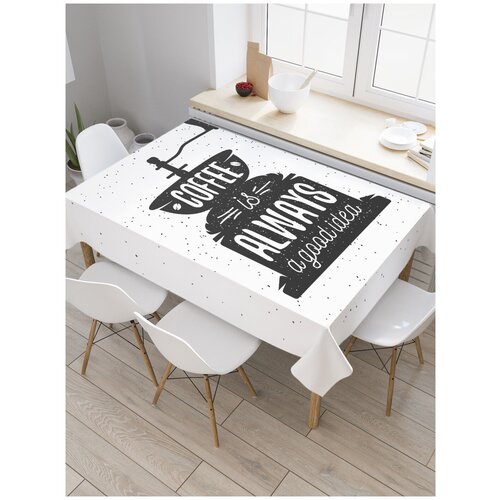 Скатерть прямоугольная JoyArty Кофе всегда хорошая идея из сатена, 180x145 см