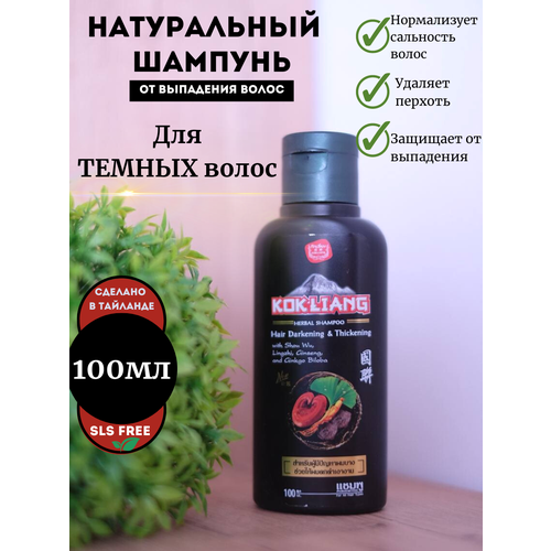 Kokliang Шампунь бессульфатный против выпадения для темных волос тайский травяной, 100 мл