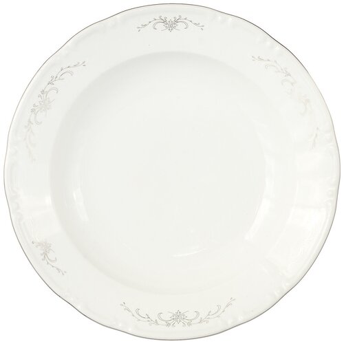 Блюдо круглое 30 см, 34;Constance34;, декор 34;Серый орнамент, отводка платина34;.Каждое изделие выполнено из высококачественного фарфора в стиле барокко и будет красиво смотреться при сервировке стола, чем порадует как гостей, так и хозяев дома. Фарфоровая посуда одна из самых красивых и востребованных среди покупателей всего мира. В своей работе сотрудники компании используют традиционные техники работы с фарфором. Высокое качество, стильный и минималистичный дизайн, рельефные формы, утолщенные края, защищающие от сколов главные отличительные черты чешского бренда.