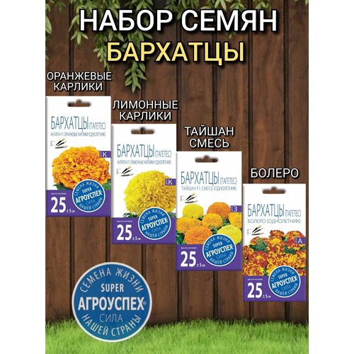 Семена Агроуспех бархатцы: Тайшан смесь, Болеро, Антигуа карлик лимонный и оранжевый