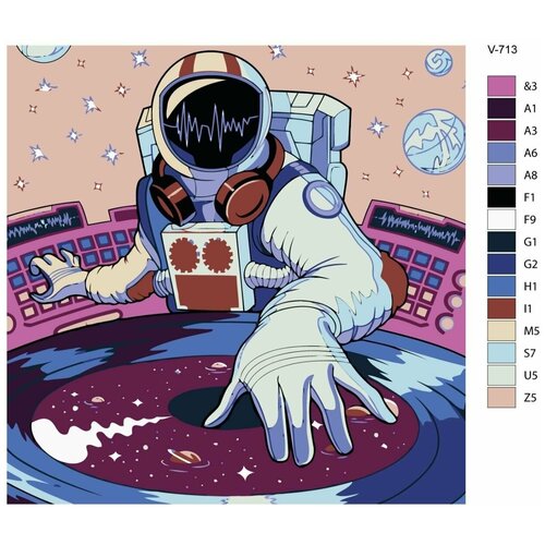Картина по номерам V713 Космонавт диджей, 70x70 см