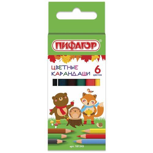 Карандаши цветные пифагор малышикарандаши, 6 цветов, укороченные, заточенные, 181343