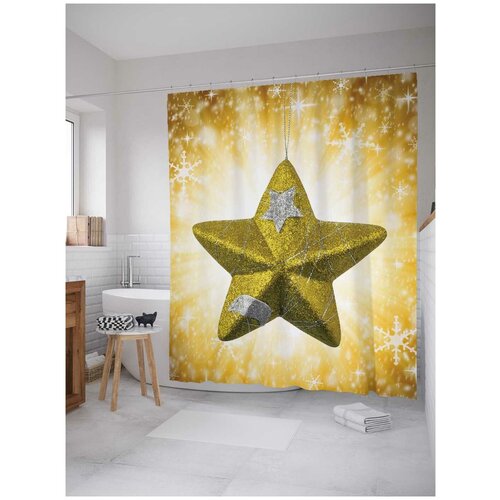 Штора занавеска) для ванной JoyArty Сияние праздничной звезды из сатена, 180х200 см с крючками