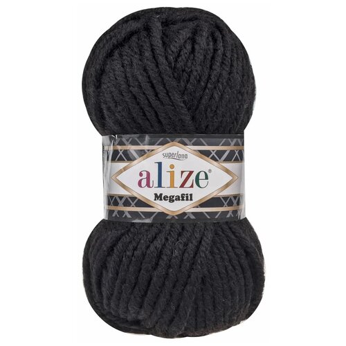 Пряжа Alize Superlana Megafil черный 60), 25шерсть75акрил, 55м, 100г, 5шт