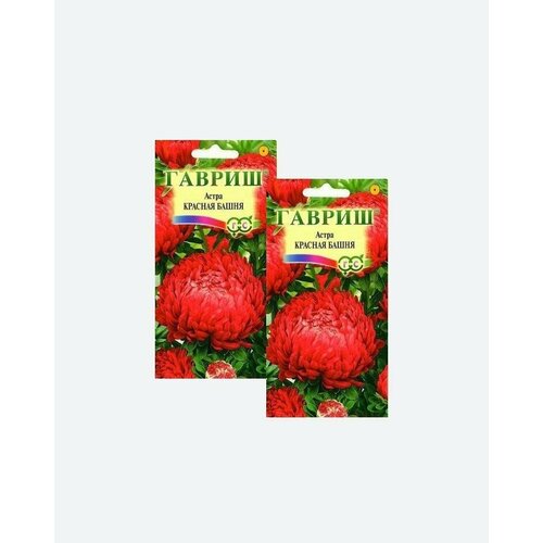 Семена Астра Красная башня, пионовидная, 0,3г, Гавриш2 упаковки)