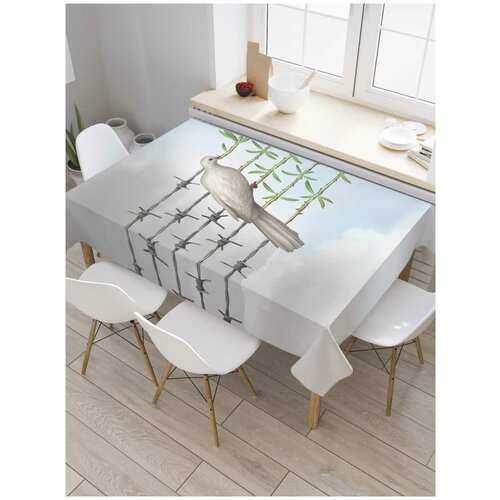 Скатерть прямоугольная JoyArty на кухонный стол Голубь между проволокой и ветками из оксфорда, 180x145 см