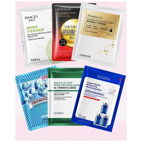 Набор косметических тканевых масок для лица для комплексного ухода за кожей, 6 шт.