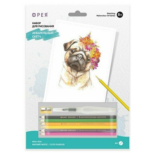 Картина по номерам Милый мопс Скетч для раскраш. акварельными карандашами, 29.7x21 см. Фрея