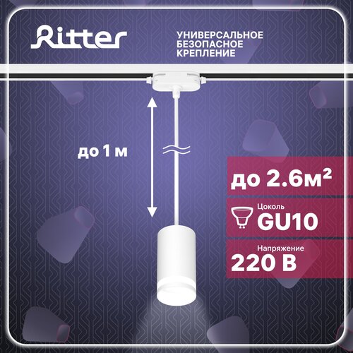 Трековый светильник подвесной однофазный под лампу GU10, белый, до 40Вт, стандартное крепление на любой шинопровод 220В, Ritter ARTLINE 59929 0