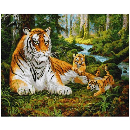 Рисовать картины по номерам не сложно, интересно и полезно. Нежные цветы, живописные пейзажи, животные, птицы, люди и натюрморты любое из изображений под силу нарисовать даже новичку. Контур изображения нанесен на холст. Каждому сегменту изображения присвоен свой маркер. Рисование по номерам помогает отвлечься от суеты, достичь гармонии, развить творческий потенциал. Такие картины идеально подойдут для украшения интерьера дома, ресторана или кафе. Из таких картин удобно создавать целые композиции или группы на стене. Используя кисти и краски, на холсте можно нарисовать картину известного корейского художника Сунг Ли Строгий отец , на которой изображен тигротец и рядом два резвящихся тигренка. Для такого творчества не требуются специальные художественные навыки. Нужно лишь следовать инструкции и время от времени сверяться с цветовой схемой рисунка. Характеристики: размер: 40х50 см уровень сложности: 4 повышенный количество цветов: 26 В комплекте: холст на подрамнике 3 нейлоновые кисти разного размера акриловые краски