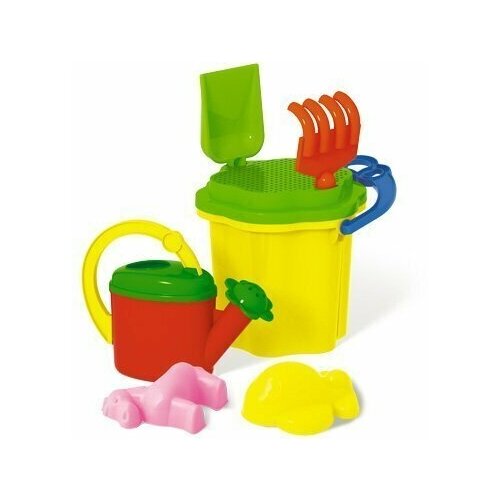 Песочный набор 109 01809 Размер упаковки: 15х19х 20 см. Состав: полипропилен Упаковка: сетка Комплектация: Ведроцветок 0,7 л, сито, грабли 21 см, совок 21 см, лейка 0,3 л, 2 формочки Страна происхождения: Россия Большой песочный набор ярких, сочных цветов не оставит малыша равнодушным. В комплект входит все, чтобы создавать самые разнообразные конструкции из песка и воды, от сказочных замков до куличиков. На вместительном ведерке имеется крышкасито с отверстиями для грабелек и совочка, леечка для воды имеет большую ручку, за которую удобно держаться как для переноски, так и для полива. Играя с таким набором, малыш отлично проведет время, разовьет мелкую моторику и сенсорику, а также потренирует свои творческие способности.