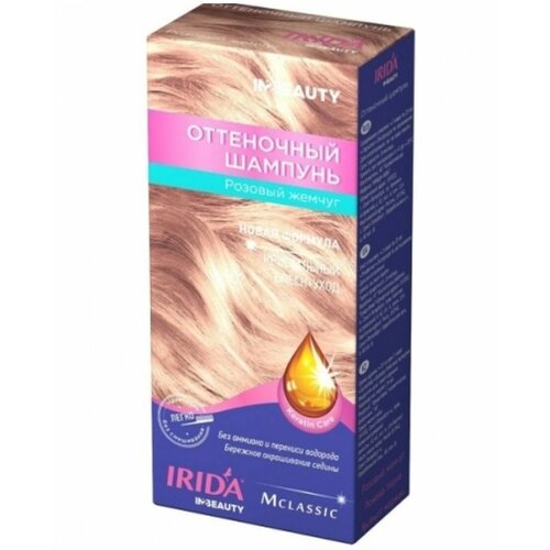 Оттеночный шампунь IRIDAМ Ирида) Розовый жемчуг, создан для тех, кто планирует менять цвет своих волос и экспериментировать с образом и фантазировать с внешностью. Действия оттеночного шампуня хватает на месяц, после этого можно вновь менять свой цвет волос. Данный шампунь отлично подходит для обновления и выравнивания цвета в перерывах между покраской аммиачными красками.Оттеночный шампунь ИридаМ нежно окрашивает Ваши волосы в нужный цвет, хорошо справляется с седыми волосками. В одной упаковке шампуня укомплектовано 3 пакетика с краской. На одну покраску тратится одиндва пакетика с краской в зависимости от длины волос), а третий применить чтобы подкрашивать отросшие корни. Шампунь, как и краску нужно нанести на волосы, оставить минут на 30, после смыть проточной водой. Краска легко смывается с лица и шеи, если она во время окрашивания попадет на тело.В результате окрашивания, волосы получают красивый натуральный блеск и легкий оттенок. Этим шампунем рекомендовано окрашивать волосы, если вы не планируете радикально менять цвет своих волос, а хотите лишь слегка сформировать его, придать блеск или скрыть седину. Средство без содержания в своем составе перекиси водорода и аммиака.