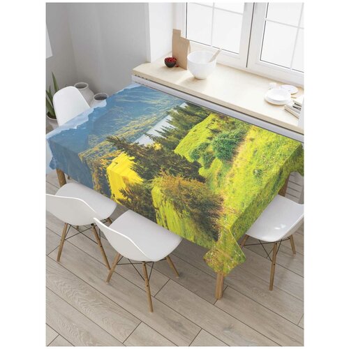 Скатерть прямоугольная JoyArty на кухонный стол Озеро у подножья гор из оксфорда, 180x145 см
