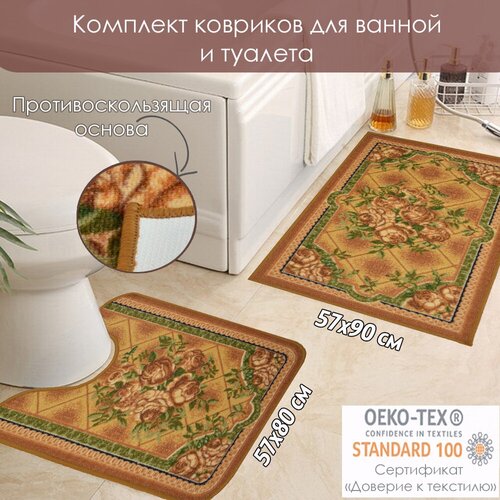 Комплект ковриков на резиновой основе с вырезом под унитаз 57х80 см и прямоугольный 57х90 см производства фабрики 34;MAC CARPET34; Египет). Коврик с ворсом из 100 нейлона высотой 3 мм сертифицирован по стандарту OEKOTEX 34;Доверие текстилю34;. Особая техника печати позволяет нам создавать широкое многообразие узоров на мягкой поверхности коврика, а Вам выбрать тон и расцветку, которая подойдет для Вашей ванной комнаты и будет соответствовать Вашим предпочтениям. Компания 34;Клеопатра Трейдинг Ко34; предлагает красивые коврики для санузла в комплектах и по отдельности для Вашего уюта и комфорта. Преимущества таких элементов декора: устойчивы к износу и загрязнению, быстро выравниваются при наличии заломов, долго сохраняют привлекательный вид. Коврики для ванной с противоскользящим эффектом нетребовательны в уходе: рекомендуем стирать на деликатном режиме без отжима при температуре не выше 30 С и сушить в расправленном виде. Стандартные размеры ковриков Cleopatra for trading and international marketing удовлетворят самого взыскательного покупателя: мы предлагаем коврики на резиновой основе размером от 40х60 см до 1х1,5 м. Маленький коврик знак внимания, дополнение к подарку на праздник и необходимая вещь в дом и на дачу.
